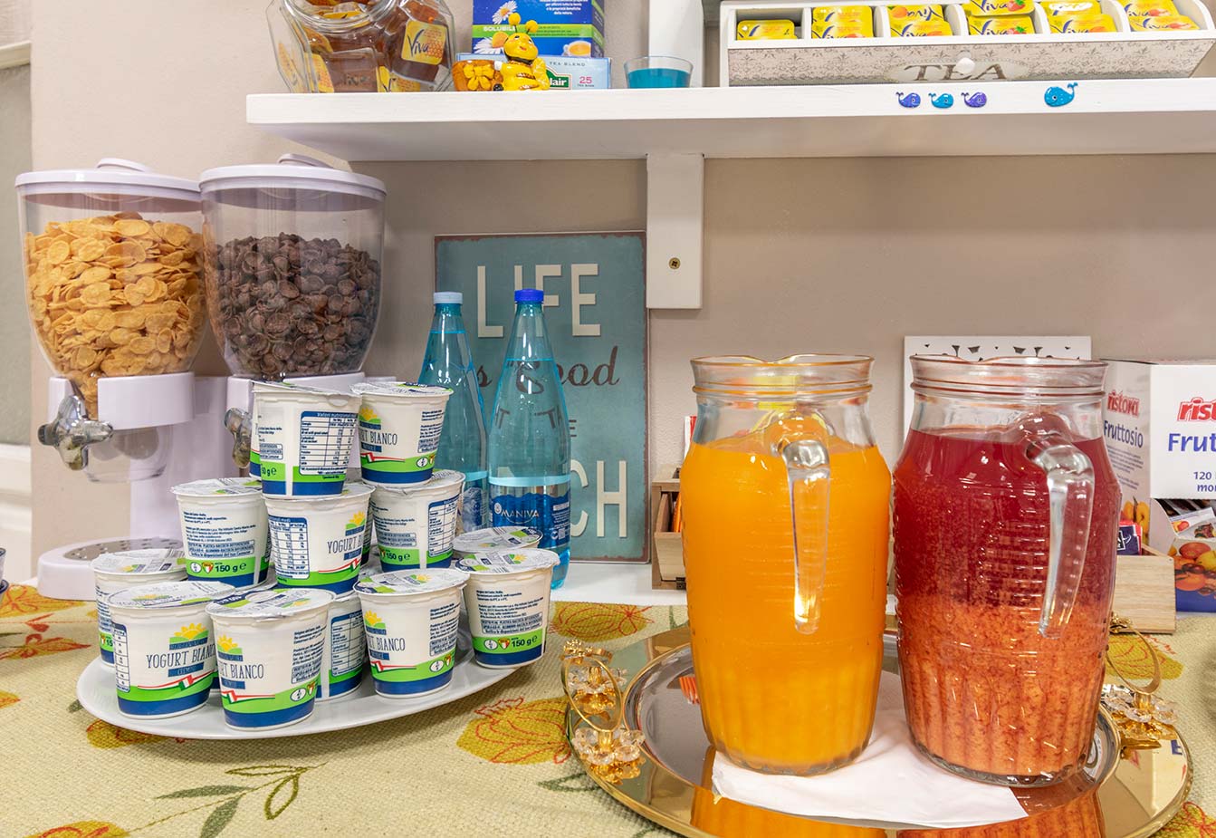 La nostra colazione all'italiana è sempre ricca, golosa e abbondante. Proponiamo sfiziosi panini caldi, focaccia, brioches, ma anche dolci fatti in casa, confetture, succhi, soffici cappuccini e quant'altro! Ai nostri cari ospiti serviamo anche prodotti biologici e per celiaci. Su richiesta serviamo gustose colazioni salate, con formaggi, affettati e salumi tipici Toscani!